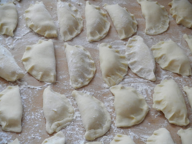 Today, we made our own dinner--pierogies! It was delightful. We had ricotta cheese in half, and then blueberries in the other half. So really we made dinner AND dessert! And if I do say so myself, they were delicious. It was so much fun making them in a big group. There are 15 volunteers, so we had quite a kitchen goin'! Not to mention the five Polish women teaching us! How do they look?!